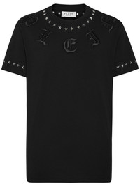 gothic-logo round-neck T-shirt Highlights - Black - Cotton - Jersey texture - Applique logo - Round neck - Star stud detailing - Short sleeves - Straight hem Made in Italy Composition Cotton 100%