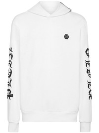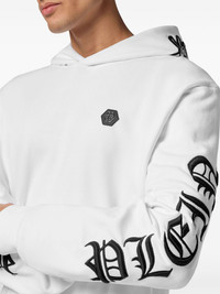 Gothic Plein cotton hoodie Highlights - White/black - Cotton - Applique logo - Logo print at the sleeve - Signature tiger motif - Classic hood - Long sleeves - Two side slit pockets - Ribbed trim - Straight hem Made in Italy Composition Cotton 100%