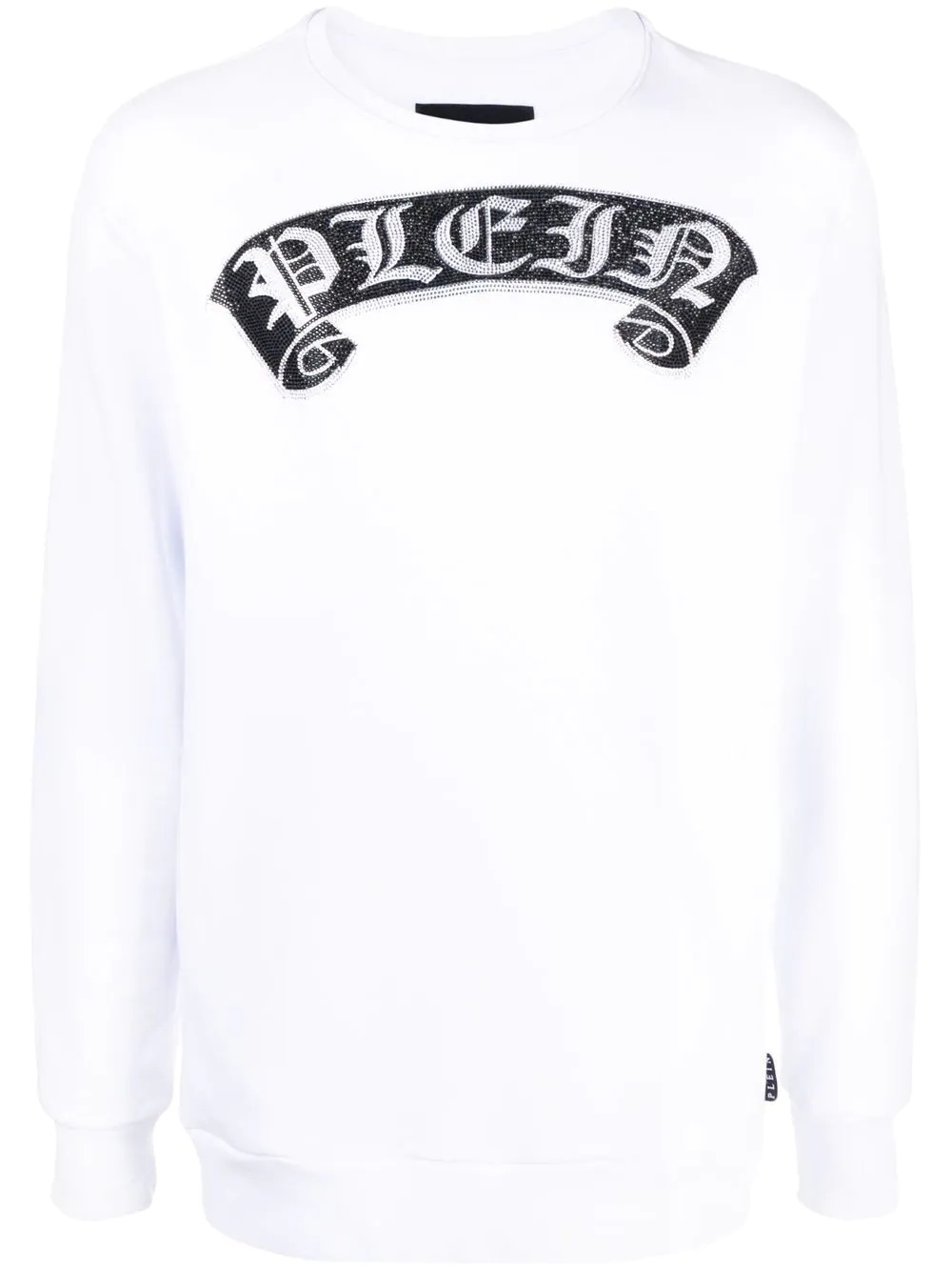 Gothic Plein crystal-logo sweatshirt Highlights - White/black/silver - Cotton - Crystal logo to the chest - Crew neck - Long sleeves - Elasticated cuffs - Elasticated hem - When buying this unisex item, keep in mind that it is graded in standard men's sizing. Imported Composition Cotton 100% SIZE & FIT Model measurements Height 5 ft 10 in(1.78 m) Bust/Chest 31.49 in(80 cm) Hips 36.22 in(92 cm) Waist 25.59 in(65 cm) FittingInformation This piece is unisex. Please take care when selecting your size Designed for a loose fit for men and an oversized fit for women Made with a mid-weight fabric Washing instructions Hand Wash