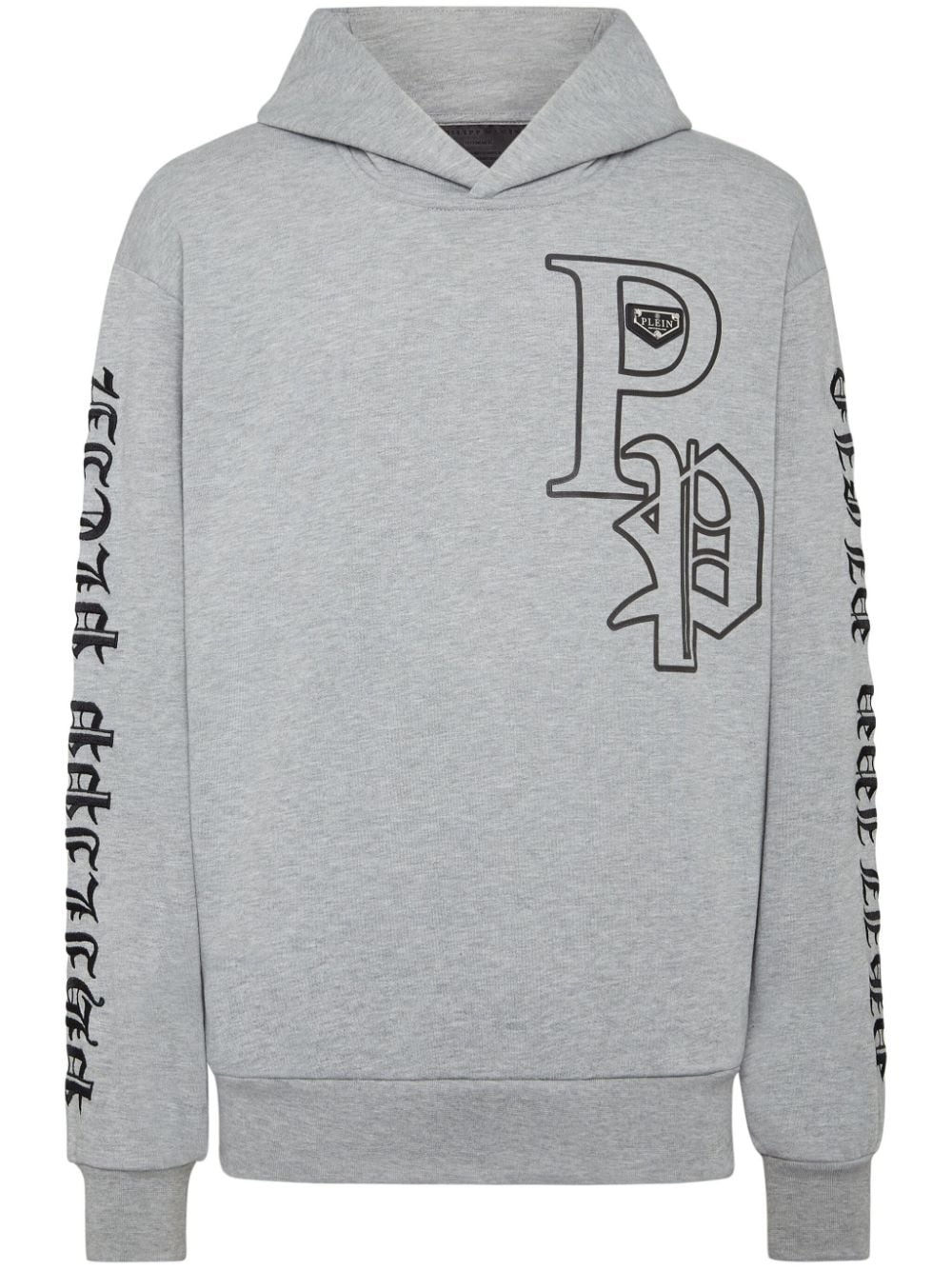 Gothic Plein hoodie Highlights - Grey - Cotton blend - Gothic print - Classic hood - Long sleeves - Logo print at the chest - Ribbed cuffs and hem Imported Composition Polyester 100%, Cotton 100%