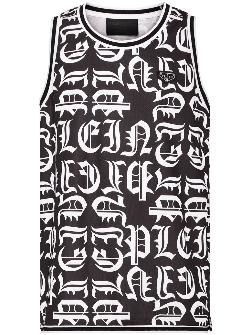 Gothic Plein jersey tank top Highlights - Black/white - Jersey texture - Monogram pattern - Stripe detailing - Crew neck - Sleeveless - Logo patch at the chest - Straight hem Made in Italy Composition Polyester 100%