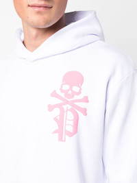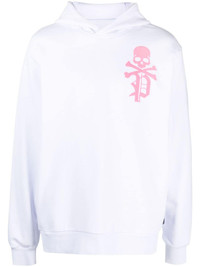 Gothic Plein logo-flocked cotton hoodie Highlights - Optical white/blush pink - Cotton - Flocked finish - Logo print to the front - Skull print to the front - Logo plaque - Drop shoulder - Long sleeves - Elasticated cuffs and hem Imported Composition Cotton 100% SIZE & FIT Model measurements Height 6 ft 2 in(1.89 m) Bust/Chest 38.97 in(99 cm) Hips 38.18 in(97 cm) Waist 32.28 in(82 cm) FittingInformation Designed for a relaxed fit, this piece allows for comfort and movement when worn Made from a midweight non-stretch fabric, this piece offers minimal elasticity when worn This piece fits true to size – take your usual size Washing instructions Hand Wash