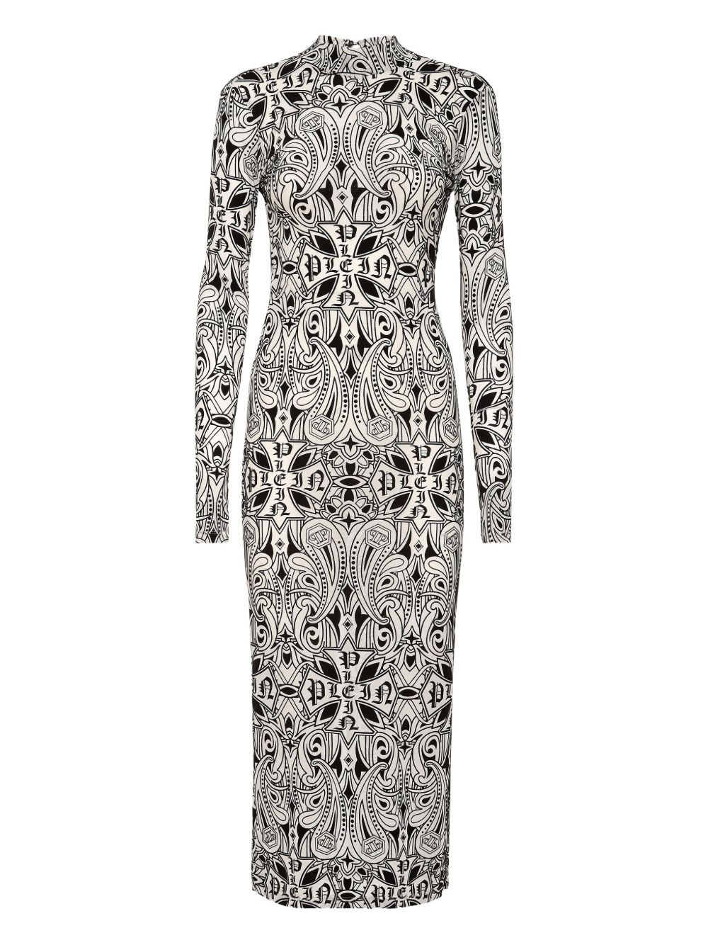 Gothic Plein midi dress Highlights - Black - Rear button fastening - Rear slit - Mock neck - Open back Imported Composition Fabric 100% Washing instructions Read Manufacturer Guidelines