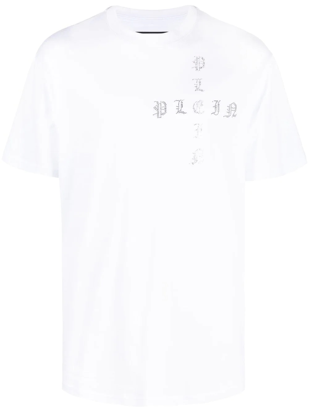 Gothic Plein short-sleeve T-shirt white cotton gothic print logo lettering round neck short sleeves Imported Composition Cotton 100% SIZE & FIT Model measurements Height 6 ft 2 in(1.87 m) Bust/Chest 36.41 in(92.5 cm) Hips 35.43 in(90 cm) Waist 29.52 in(75 cm) FittingInformation This piece fits true to size. We recommend you get your regular size Cut for a relaxed fit Made with a mid-weight fabric Washing instructions Hand Wash