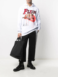 graphic-print rib-trimmed hoodie white/multicoloured cotton-blend rhinestone embellishment drawstring hood drop shoulder long sleeves two side slit pockets straight hem When buying this unisex item, keep in mind that it is graded in standard men's sizing. Imported Composition glass 100%, Cotton 88%, Polyester 12% SIZE & FIT Model measurements Height 5 ft 11 in(1.8 m) Bust/Chest 31.1 in(79 cm) Hips 34.25 in(87 cm) Waist 22.83 in(58 cm) FittingInformation This piece is unisex. Please take care when selecting your size Cut for a relaxed fit for both men and women Made with a mid-weight fabric Washing instructions Machine Wash