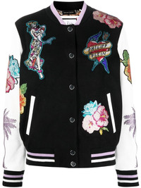 Hawaii bomber jacket Multiple sequin-embellished patches give this bomber jacket from Philipp Plein an unmistakable branded finish. The multicolour motifs stand out against the black and white shades of this layering piece. Imported Composition Lining: Polyester 100% Outer: Calf Leather 100%, Polyester 64%, Viscose 33%, Elastane 3% SIZE & FIT Model measurements Height 5 ft 11 in(1.8 m) Bust/Chest 31.88 in(81 cm) Hips 35.03 in(89 cm) Waist 24.01 in(61 cm) FittingInformation This piece fits true to size. We recommend you get your regular size Cut for a loose fit Made with a mid-weight fabric Washing instructions Do Not Wash/Do Not Dry Clean