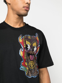 Hawaii embellished short-sleeve T-shirt black/multicolour cotton jersey knit crystal embellishment logo patch at the chest graphic print to the front round neck short sleeves straight hem Imported Composition Cotton 100% SIZE & FIT Model measurements Height 6 ft 2 in(1.88 m) Bust/Chest 36.61 in(93 cm) Hips 37.79 in(96 cm) Waist 28.74 in(73 cm) FittingInformation Designed to be unstructured, offering a loose fit throughout Made from a midweight non-stretch fabric, this piece offers minimal elasticity when worn This piece fits true to size – take your usual size Washing instructions Hand Wash