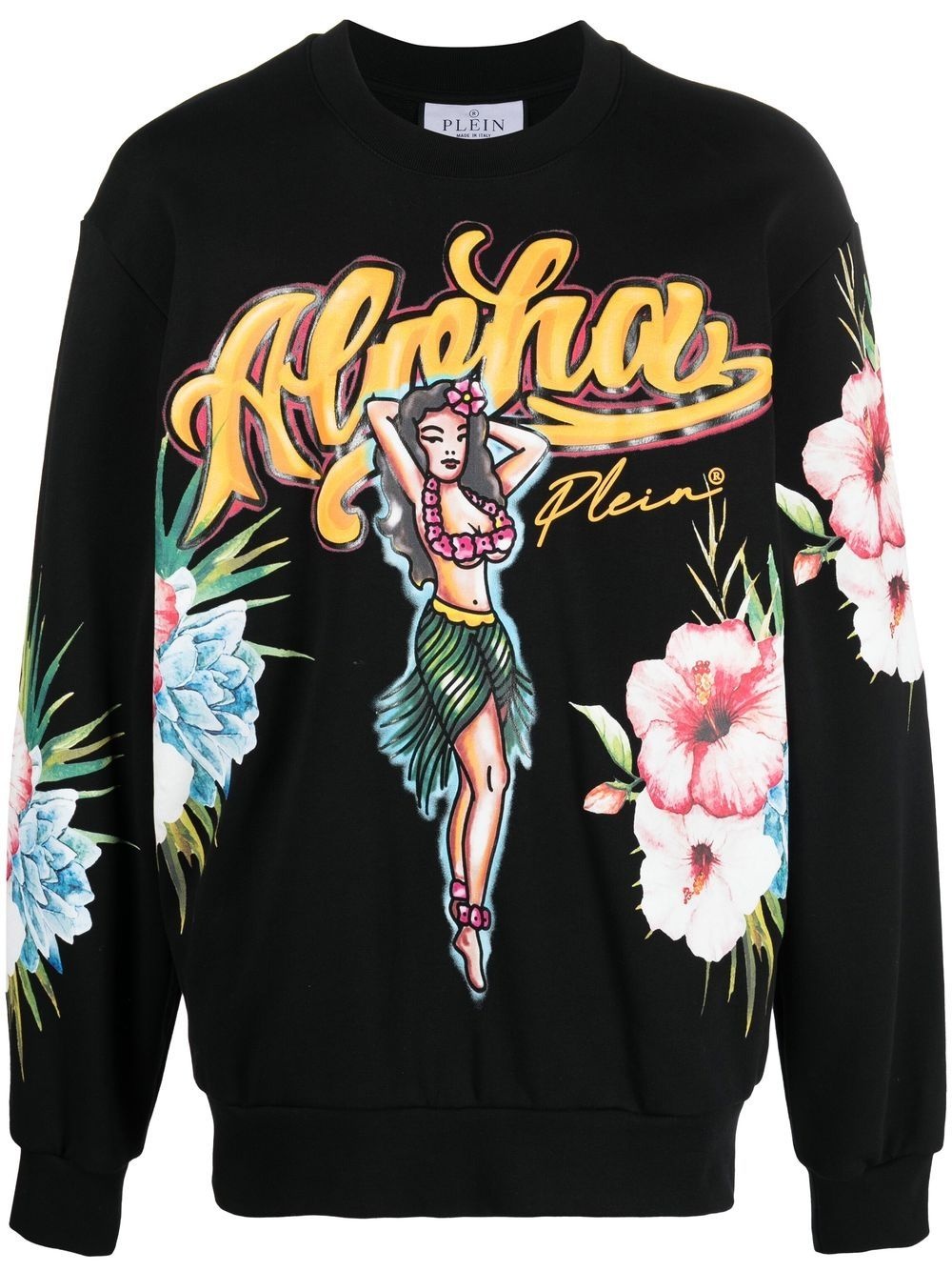 Hawaii-print sweatshirt black cotton all-over graphic print logo patch to the rear crew neck long sleeves elasticated cuffs straight hem Made in Italy Composition Cotton 100% SIZE & FIT Model measurements Height 6 ft 2 in(1.88 m) Bust/Chest 36.61 in(93 cm) Hips 35.82 in(91 cm) Waist 27.95 in(71 cm) FittingInformation Designed to be unstructured, offering a loose fit throughout Made from a midweight non-stretch fabric, this piece offers minimal elasticity when worn This piece fits true to size – take your usual size Washing instructions Machine Wash