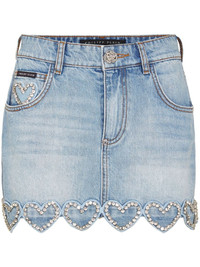 heart-embellished denim skirt