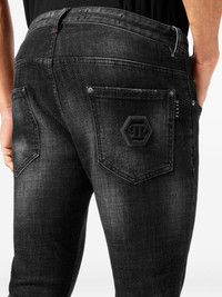 Hexagon-applique jeans Highlights - Black - Concealed fly and button fastening - Classic five pockets - Logo patch to the front - Belt loops Imported Composition Lining: Polyester 65%, Cotton 35% Outer: Polyester 100%, Cotton 98%, Elastane 2%