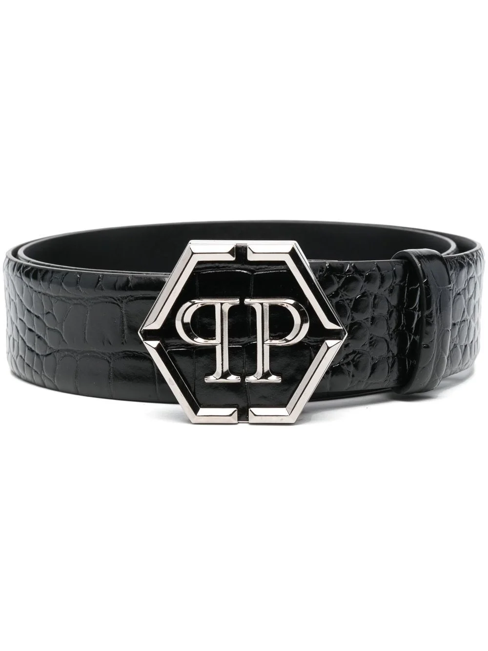 hexagon logo-buckle leather belt black calf leather embossed crocodile effect logo-buckle detail punched holes adjustable fit Made in Italy Composition Calf Leather 100% SIZE & FIT Measurement Maximum Length 41.33 in(105 cm) Minimum Length 37.4 in(95 cm) WIDTH 1.57 in(4 cm)