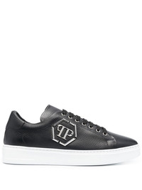 Hexagon logo-embellished sneakers black calf leather silver-tone logo plaque flat rubber sole front lace-up fastening round toe Made in Italy Composition Lining: Calf Leather 100% Sole: Rubber 100% Outer: Calf Leather 100% SIZE & FIT Measurement HEEL 1.37 in(3.5 cm) Sole height 1.18 in(3 cm)