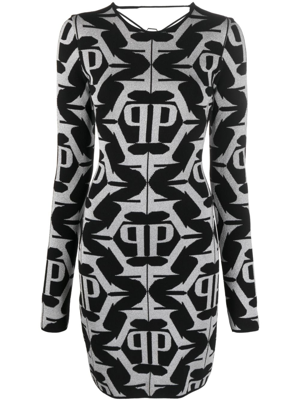Hexagon monogram-jacquard lurex minidress Highlights - Jet black/light grey - Monogram jacquard - Lurex detailing - Cut-out detailing - Gold-tone logo plaque - Crew neck - Long sleeves - Straight hem - Thigh-length Made in Italy Composition Viscose 39%, Acetate 34%, Polyester 17%, Nylon 5%, Metallized Polyester 5% SIZE & FIT Model measurements Height 5 ft 10 in(1.78 m) Bust/Chest 31.49 in(80 cm) Hips 37 in(94 cm) Waist 23.62 in(60 cm) Washing instructions Machine Wash