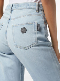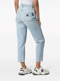 high-rise straight-leg jeans Highlights - Light blue - Stretch-cotton - Logo patch to the rear - Washed denim - High-rise - Front button and zip fastening - Classic five pockets - Straight leg Made in Italy Composition Outer: Cotton 99%, Elastane 1% Lining: Polyester 65%, Cotton 35%