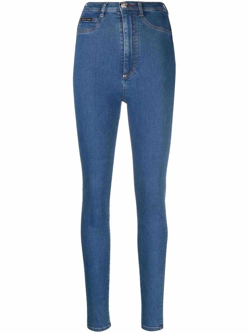 high-waist jegging jeans medium wash blue stretch cotton logo plaque logo tag high waist belt loops front button and zip fastening skinny cut ankle-length Imported Composition Cotton 92%, Polyester 6%, Elastane 2% SIZE & FIT Model measurements Height 5 ft 10 in(1.78 m) Bust/Chest 31.49 in(80 cm) Hips 36.22 in(92 cm) Waist 25.59 in(65 cm) FittingInformation This piece fits true to size. We recommend you get your regular size Cut for a slim fit Made with a mid-weight stretch fabric Washing instructions Dry Clean Only