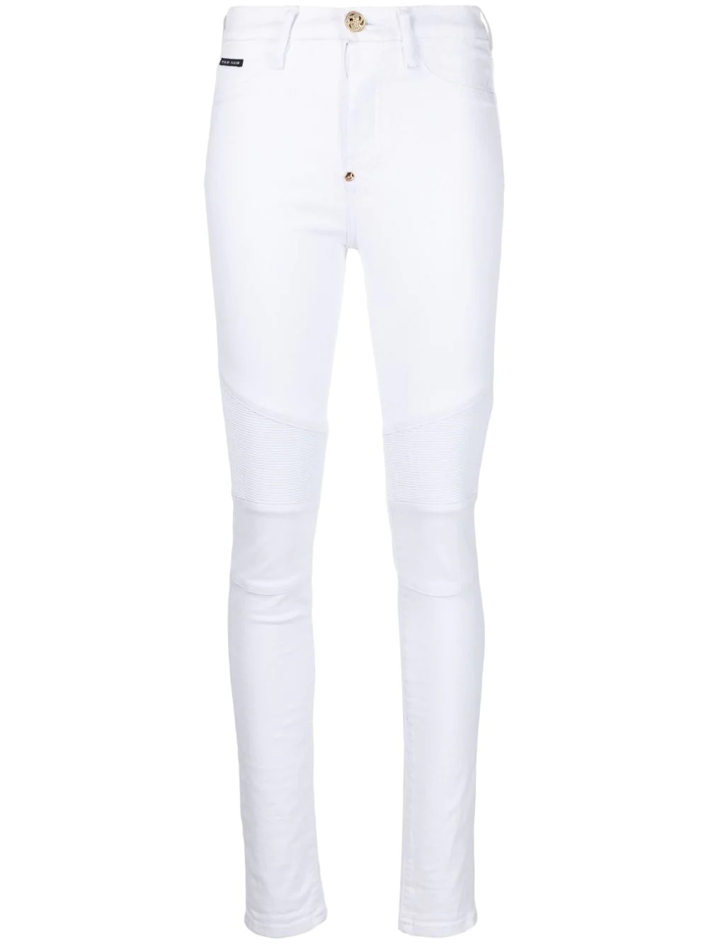 High-waisted Biker jeans white cotton high-waisted skinny cut logo patch to the front logo patch to the rear belt loops front button and zip fastening classic five pockets Imported Composition Outer: Cotton 92%, Polyester 6%, Spandex/Elastane 2% Lining: Polyester 65%, Cotton 35% SIZE & FIT Model measurements Height 5 ft 10 in(1.78 m) Bust/Chest 29.52 in(75 cm) Hips 35.03 in(89 cm) Waist 22.83 in(58 cm) FittingInformation This piece fits true to size. We recommend you get your regular size Cut for a slim fit Made with a mid-weight stretch fabric Washing instructions Dry Clean Only