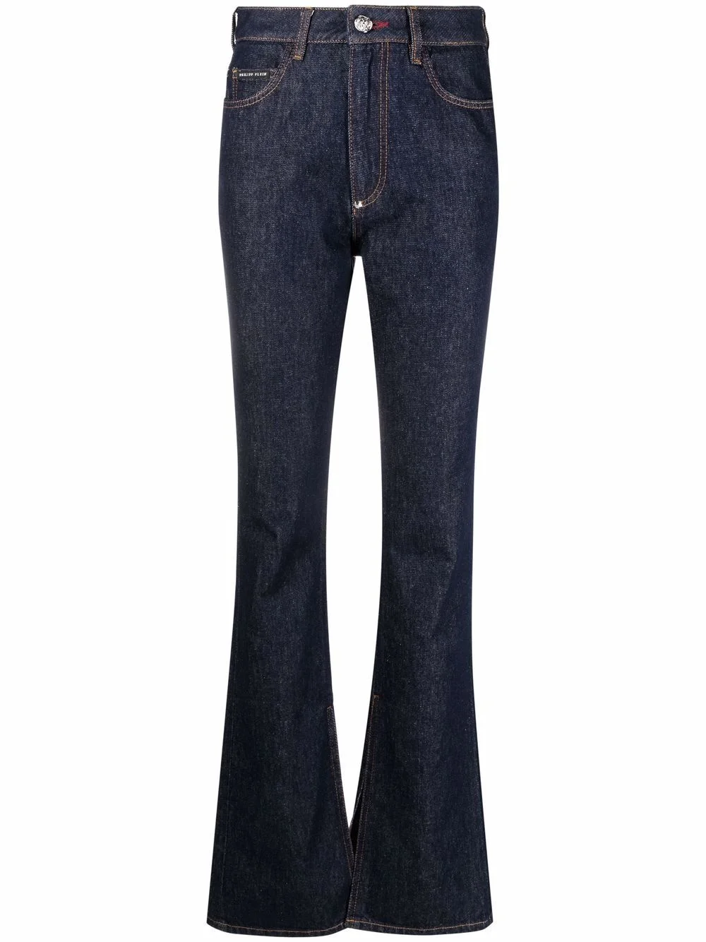 high-waisted flared jeans blue cotton high-waisted flared design slim cut dark wash front button and zip fastening belt loops slip pockets to the sides two rear patch pockets Imported Composition Outer: Cotton 100% Lining: Polyester 65%, Cotton 35% SIZE & FIT Model measurements Height 5 ft 11 in(1.8 m) Bust/Chest 31.49 in(80 cm) Hips 35.82 in(91 cm) Waist 24.8 in(63 cm) FittingInformation This piece fits true to size. We recommend you get your regular size Designed to be fitted at the waist and through the thigh, loose from the knee Made with a mid-weight non-stretch fabric Washing instructions Hand Wash