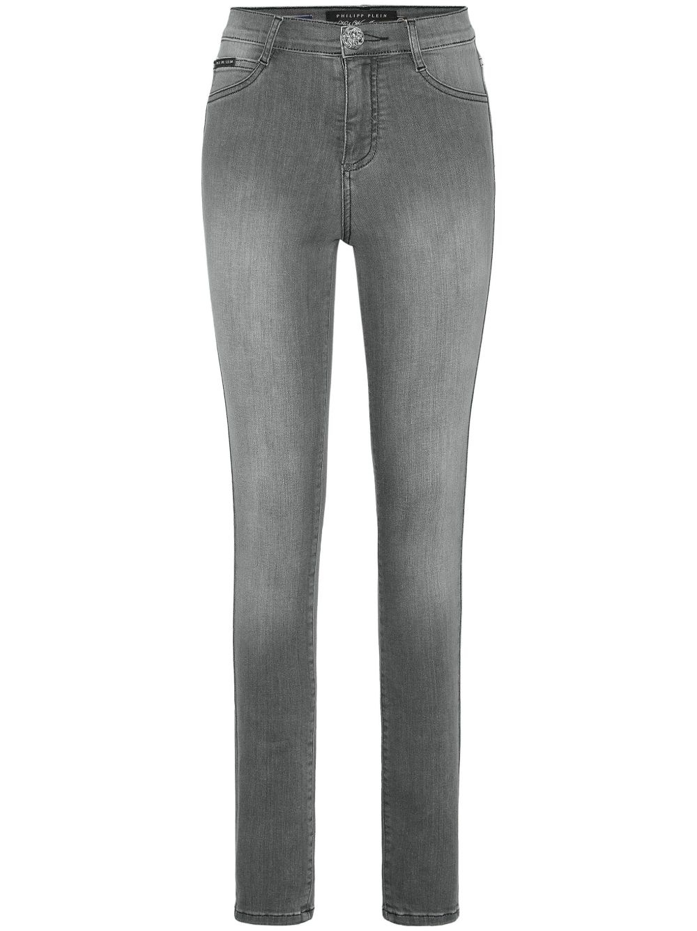 high-waisted jeans Highlights - Dark grey - Front button and zip fastening - Classic five pockets - Applique logo - Skinny cut Imported Composition Cotton 92%, Polyester 6%, Spandex/Elastane 2% SIZE & FIT FittingInformation Designed for a skinny fit, these jeans offer a close fit throughout Constructed from stretch denim, this piece offers a stretch fit with durability Washing instructions Read Manufacturer Guidelines