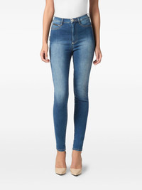 high-waisted jeans Highlights - Indigo blue - Concealed fly and button fastening - Classic five pockets - Applique logo Imported Composition Lining: Polyester 65%, Cotton 35% Outer: Cotton 100%, Polyester 100%, Metal 100%