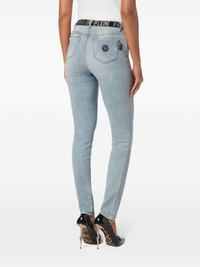 high-waisted jeggings Highlights - Light blue - Cotton blend - Denim - Front button and zip fastening - High-waisted - Belt loops - Logo waistband - Classic five pockets - Logo patch to the rear Imported Composition Polyester 100%, Glass Fiber 100%, Cotton 92%, Elastomultiester 6%, Elastane 2%