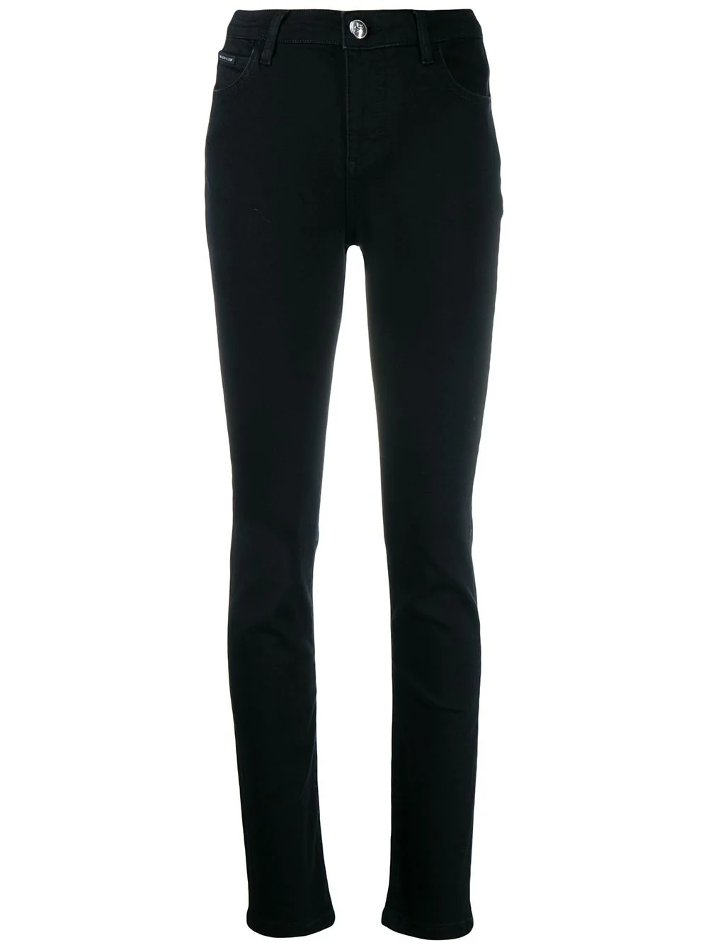 high-waisted skinny jeans Characterised by the spirit of Rock’n’roll, Philipp Plein makes clothing for those that strive to be above standard. These jeans are crafted from stretch cotton in black wash. Featuring a high waist, belt loops, a five pocket design, a skinny fit and a button and zip fly. Imported Composition Cotton 92%, Spandex/Elastane 8% SIZE & FIT Model measurements Height 5 ft 11 in(1.8 m) Bust/Chest 31.49 in(80 cm) Hips 35.82 in(91 cm) Waist 24.8 in(63 cm) Washing instructions Machine Wash