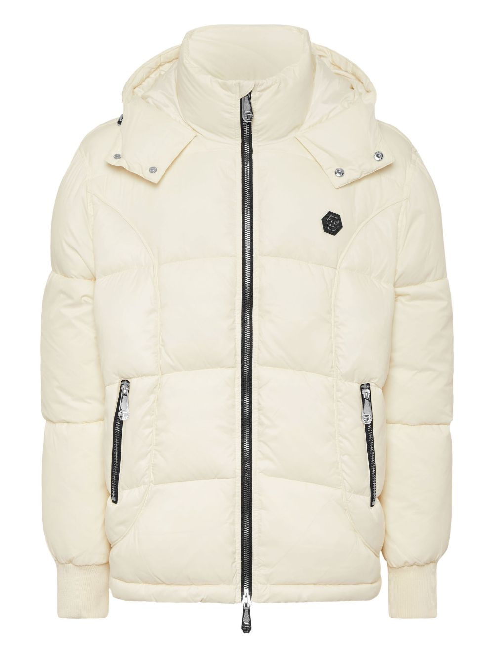 hooded puffer jacket Highlights - Off-white - Quilted design - Zip fastening - Hooded neckline - Logo patch - Ribbed cuffs Imported Composition Outer: Polyamide 100% Lining: Polyester 100% Polyester 100% Washing instructions Read Manufacturer Guidelines