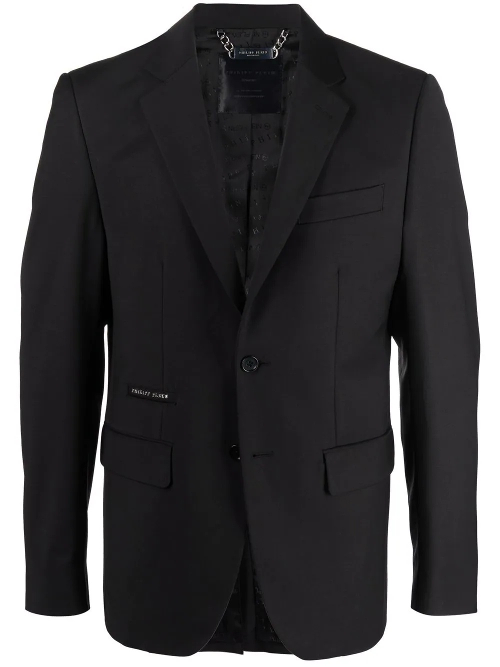 Iconic Plein single breasted jacket Denne sorte Philipp Plein blazer er fremstillet i en uldblanding og designet med et logomærke pa fronten samt en brystlomme og to flaplommer foran, hvilket skaber et enkelt og moderne look. Highlights - Black - Wool blend - Notched lapels - Front button fastening - Front flap pockets - Long sleeves - Logo-print lining Made in Italy Composition Outer: Polyester 52%, Wool 43%, Elastane 5% Lining: Viscose 51%, Acetate 49% SIZE & FIT Model measurements Height 6 ft 2 in(1.89 m) Bust/Chest 35.43 in(90 cm) Hips 36.61 in(93 cm) Waist 28.74 in(73 cm) FittingInformation This piece fits true to size. We recommend you get your regular size Cut for a slim fit Made with a mid-weight fabric Washing instructions Dry Clean Only