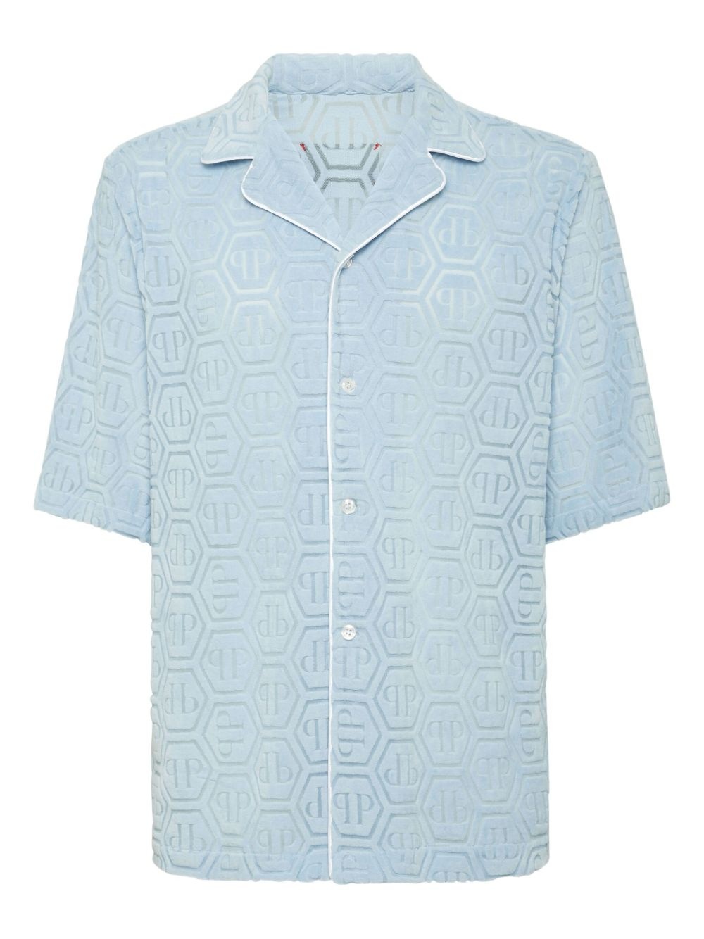 jacquard-monogram bowling shirt Highlights - Light blue - Front button fastening - Cuban collar - Short sleeves Made in Italy Composition Cotton 80%, Polyester 20%