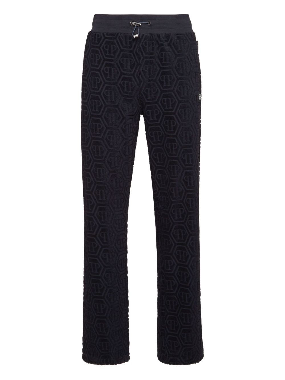 jacquard-monogram track pants Highlights - Navy blue - All-over monogram pattern - Elasticated drawstring waist - Side slit pockets - Rear patch pocket Imported Composition Cotton 100%