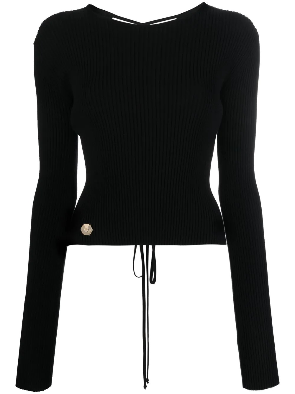 lace-up detail knitted top Philipp Plein's rebellious spirit is captured in the onyx-black hue of this knitted top, complete with sultry lace-up detailing to the rear. Made in Italy Composition Viscose 70%, Polyester 30% SIZE & FIT Model measurements Height 5 ft 10 in(1.78 m) Bust/Chest 30.31 in(77 cm) Hips 36.61 in(93 cm) Waist 24.8 in(63 cm) FittingInformation This piece fits true to size. We recommend you get your regular size Cut for a slim fit Made with a mid-weight fabric