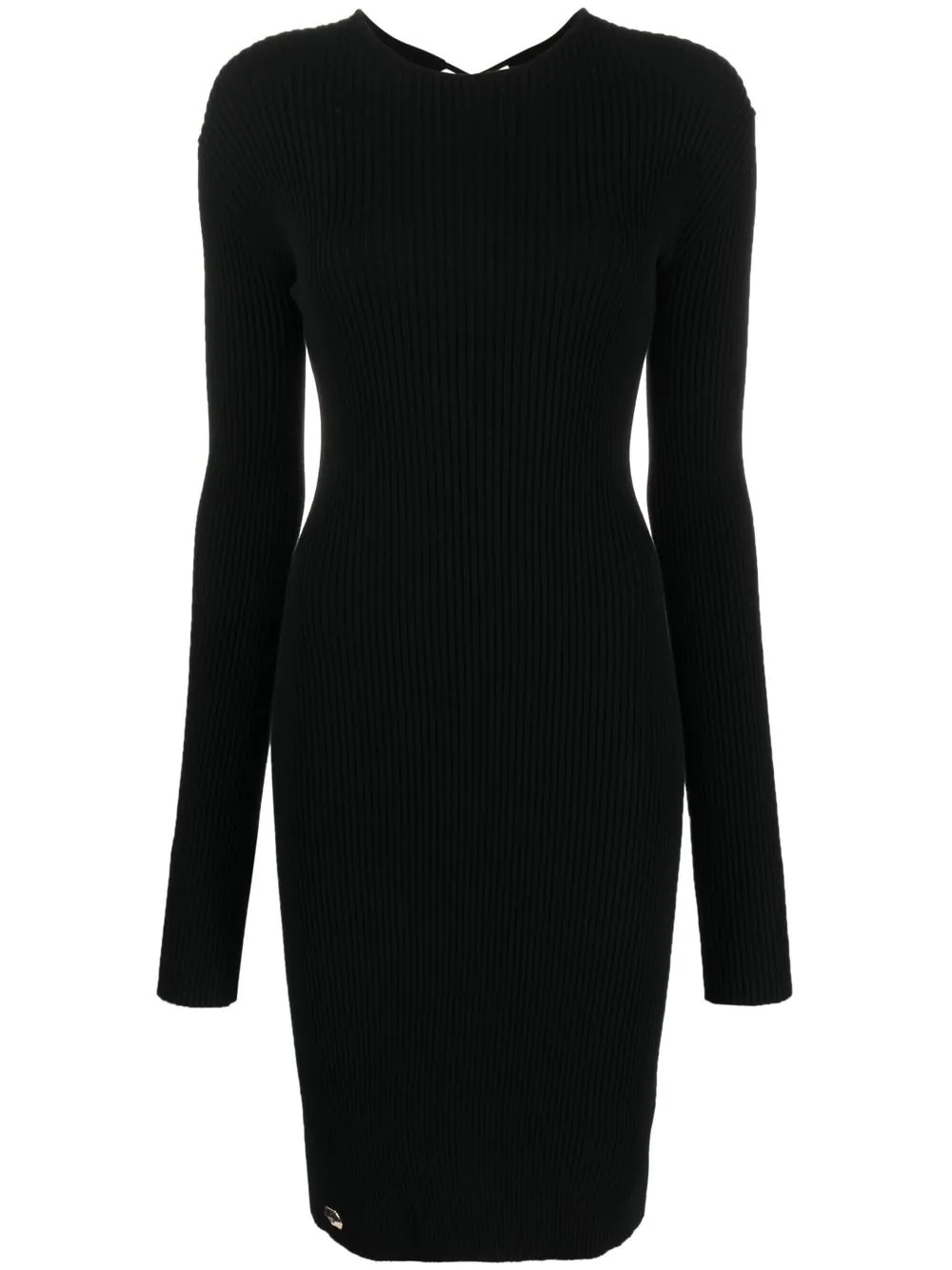 lace-up detailed midi dress Philipp Plein's rebellious spirit is captured in the onyx black hue of this rib knit dress, complete with sultry lace-up detailing to the rear. Made in Italy Composition Viscose 70%, Polyester 30% SIZE & FIT Model measurements Height 5 ft 11 in(1.8 m) Bust/Chest 31.49 in(80 cm) Hips 35.43 in(90 cm) Waist 25.19 in(64 cm) FittingInformation This piece fits true to size. We recommend you get your regular size Cut for a slim fit Made with a mid-weight fabric Washing instructions Hand Wash