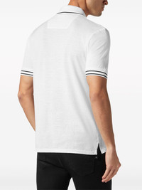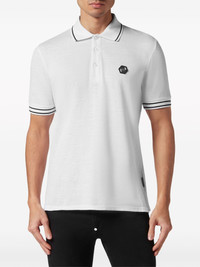logo-applique cotton polo shirt Highlights - White/black - Cotton - Pique weave - Applique logo - Silver-tone logo plaque - Striped border - Polo collar - Front button placket - Short sleeves - Straight hem Imported Composition Cotton 100%