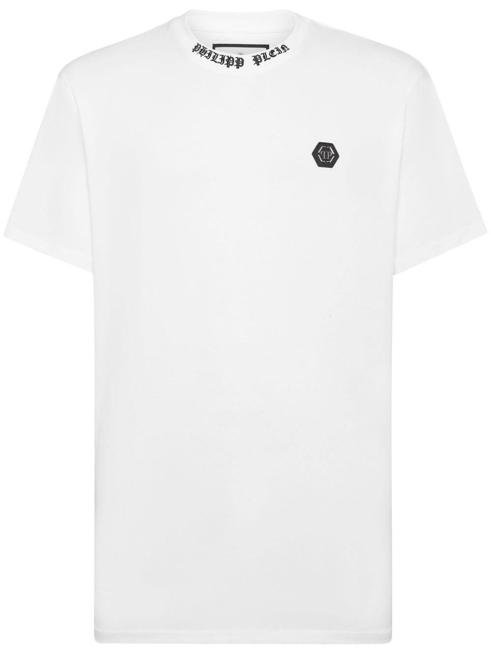 logo-applique cotton T-shirt Highlights - White - Cotton - Jersey texture - Applique logo - Silver-tone logo plaque - Crew neck - Short sleeves - Straight hem Imported Composition Polyester 100%, Cotton 100%