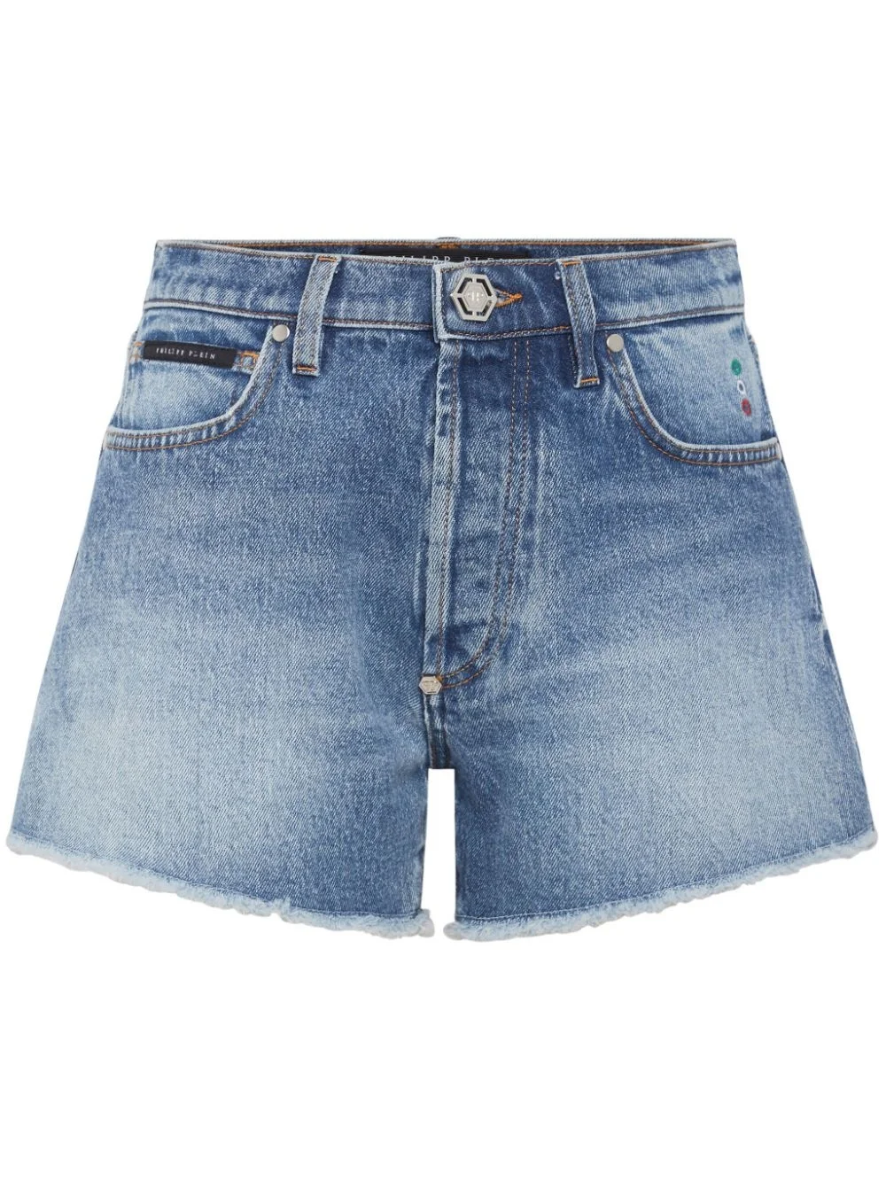 logo-applique denim shorts Highlights - Sky blue - Cotton - Stretch-design - Denim - Belt loops - Classic five pockets - Logo patch to the front and to the rear - Frayed hem - Front button and zip fastening Made in Italy Composition Lining: Polyester 65%, Cotton 35% Outer: Cotton 99%, Elastane 1% Washing instructions Read Manufacturer Guidelines