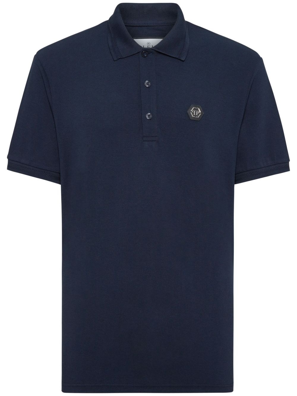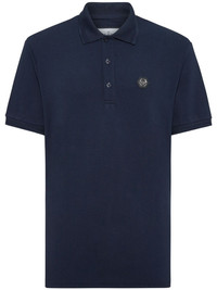 logo-applique polo shirt Highlights - Navy blue - Front button placket - Polo collar - Short sleeves - Straight hem Imported Composition Cotton 100%