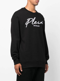 logo crew-neck jumper black cotton embroidered logo at the chest crew neck long sleeves fitted-cuff sleeves Imported Composition Polyester 100%, Cotton 100% SIZE & FIT Model measurements Height 6 ft 2 in(1.88 m) Bust/Chest 36.61 in(93 cm) Hips 37.79 in(96 cm) Waist 28.74 in(73 cm) FittingInformation This piece fits true to size. We recommend you get your regular size Cut for a loose fit Made with a mid-weight fabric Washing instructions Machine Wash