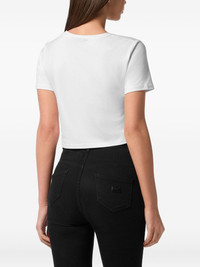 logo-detail cropped t-shirt Highlights - White - Short sleeves - Cropped length - Round neck - Logo detail Imported Composition Polyester 100%, Modal 46%, Cotton 46%, Spandex/Elastane 8% Washing instructions Read Manufacturer Guidelines