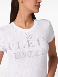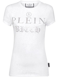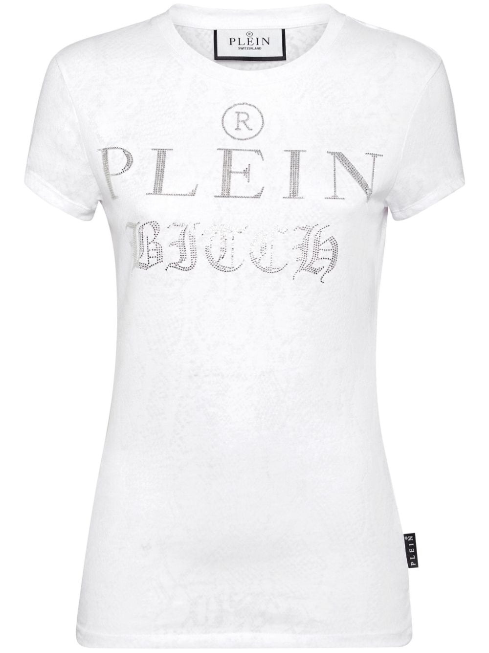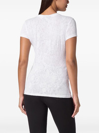 logo-embellished T-shirt Highlights - White - Cotton blend - Logo embellishment - Slip-on style - All-over snakeskin print - Crew neck - Short sleeves Imported Composition glass 100%, Polyester 50%, Cotton 50%