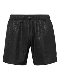logo-embossed swim shorts Highlights - Black - Embossed logo pattern - Elasticated waistband - Adjustable drawstring closure - Side pockets - Rear pocket - Lightweight design - Relaxed fit - Above-knee length - Be mindful to try on swimwear over your own garments. Imported Composition Fabric 100%