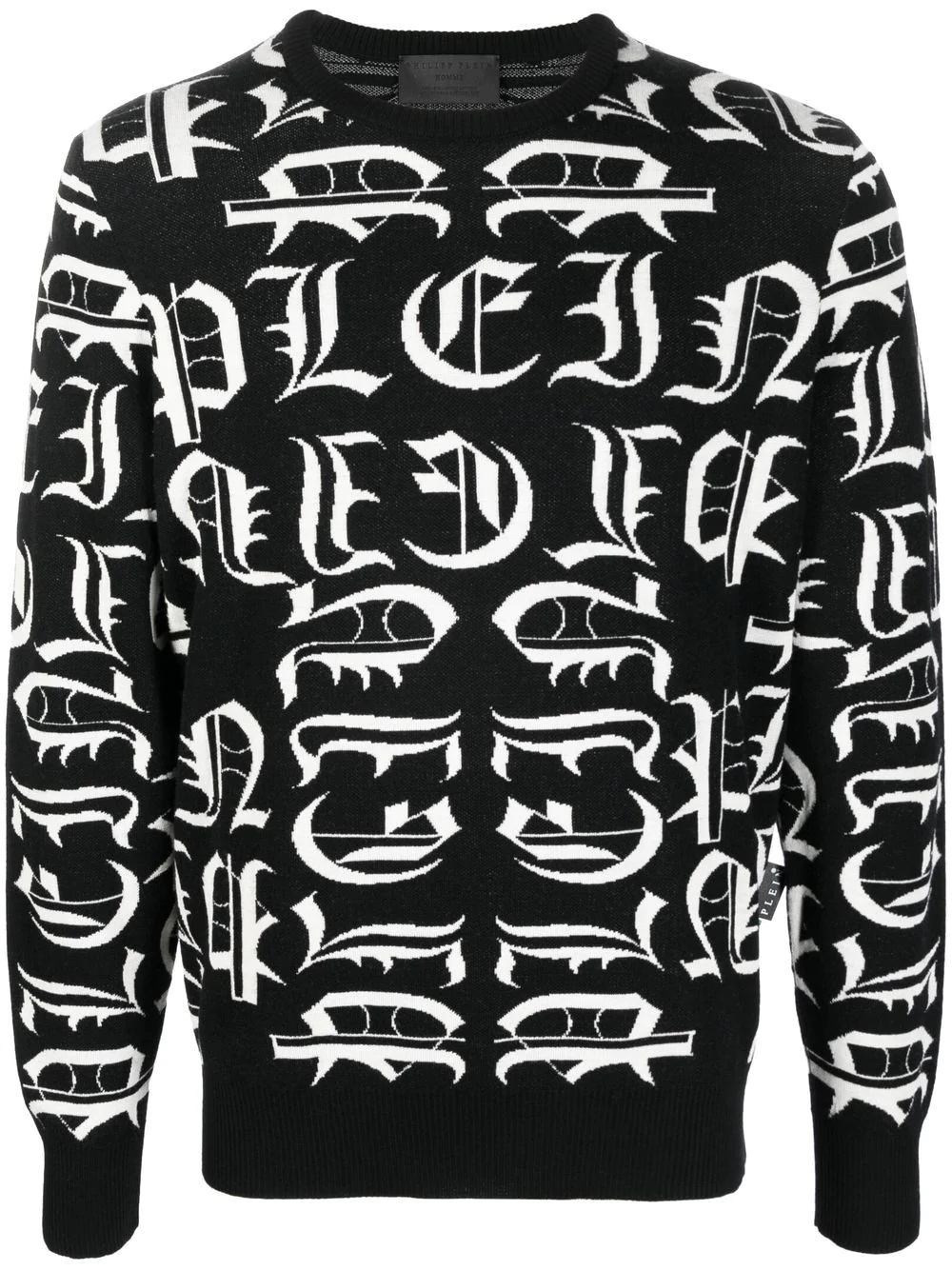 logo-embroidered crew neck sweater logo-embroidered crew neck sweater from PHILIPP PLEIN featuring black/white, fine knit, all-over logo embroidery, long sleeves and ribbed hem. Made in Italy Composition Outer: Cotton 80%, Wool 20% SIZE & FIT Model measurements Height 6 ft 1 in(1.86 m) Bust/Chest 36.61 in(93 cm) Hips 37 in(94 cm) Waist 28.74 in(73 cm) Washing instructions Dry Clean Only