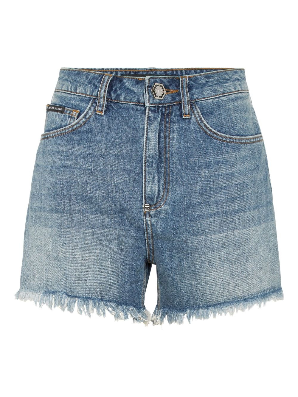 logo-embroidered denim shorts Highlights - Blue - Embroidered logo to the rear - Front button fastening - Belt loops - Classic five pockets Made in Italy Composition Outer: Cotton 100%, Polyester 100%, Calf Leather 100% Lining: Polyester 65%, Cotton 35%