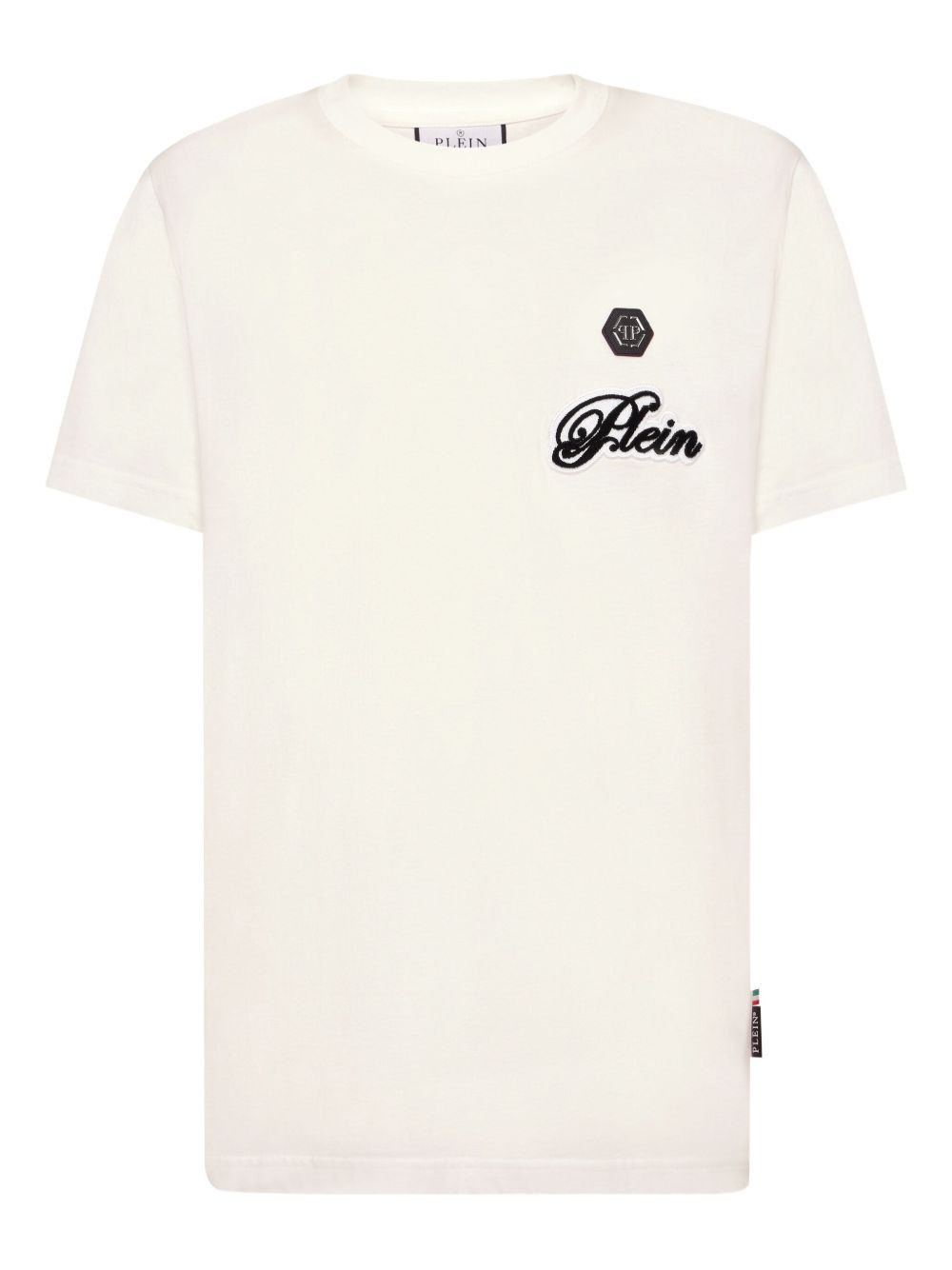 logo-embroidered T-shirt Highlights - Off-white - Front logo embroidery - Round neck - Short sleeves - Side logo tag Made in Italy Composition Cotton 100%