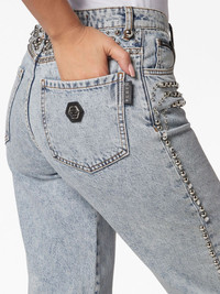 logo-patch cotton tapered jeans Highlights - Light blue - Cotton - Washed denim - Stud embellishment - Logo patch to the rear - Belt loops - Concealed fly and button fastening - Classic five pockets - Tapered leg Imported Composition Outer: Cotton 100% Lining: Polyester 65%, Cotton 35% Washing instructions Read Manufacturer Guidelines