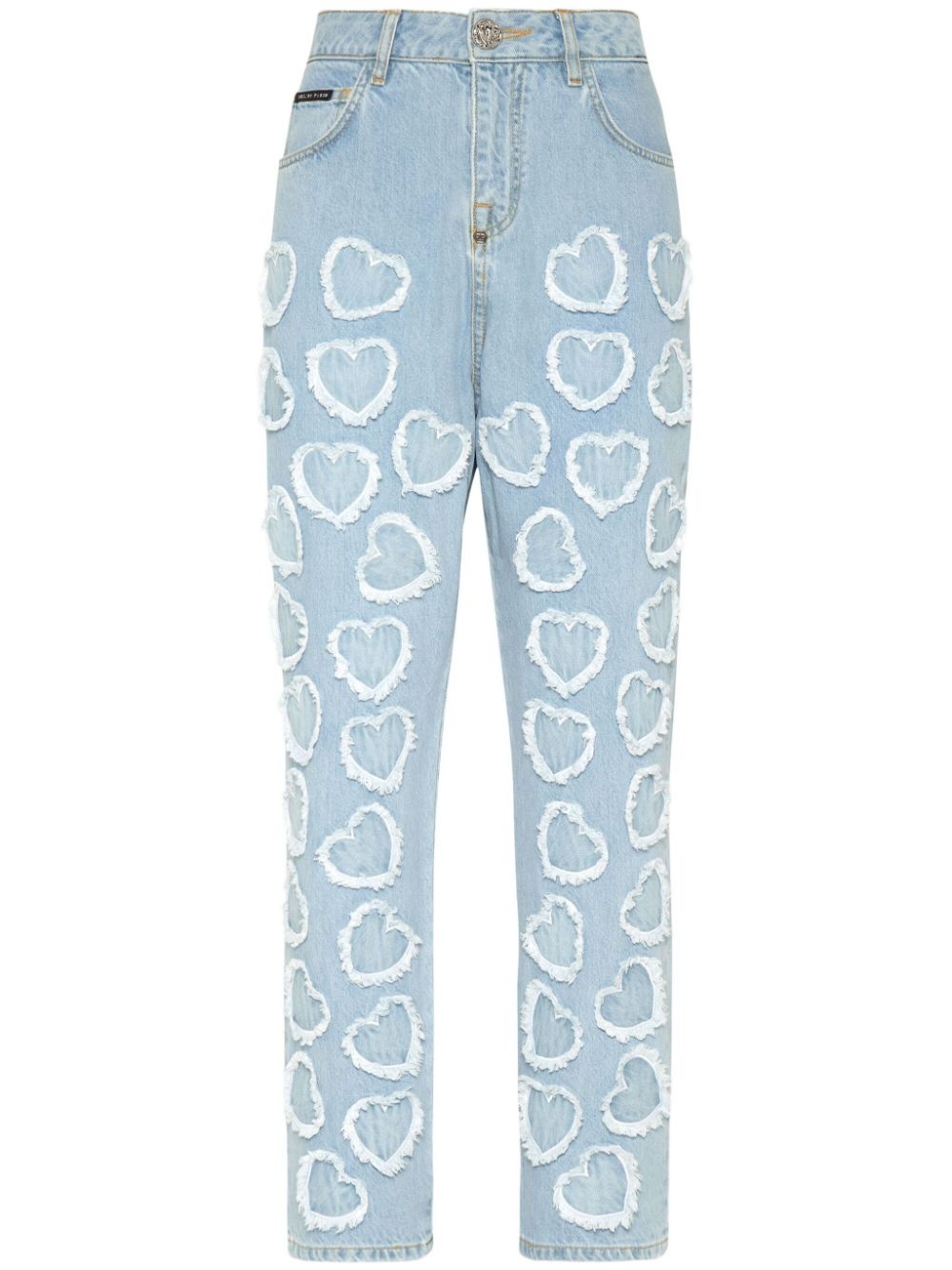 logo-patch cotton tapered jeans Highlights - Light blue - Cotton - Logo patch to the rear - Mini logo tag - Heart motif - Belt loops - Concealed fly and button fastening - Classic five pockets - Tapered leg Imported Composition Cotton 100%
