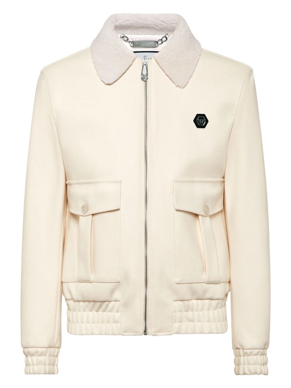 logo-patch jacket Highlights - Light beige - Front zip fastening - Two front flap pockets - Classic collar - Long sleeves Made in Italy Composition Outer: Sheep Skin/Shearling 100%, Virgin Wool 70%, Polyamide 20%, Cashmere 10% Lining: Viscose 51%, Acetate 48%