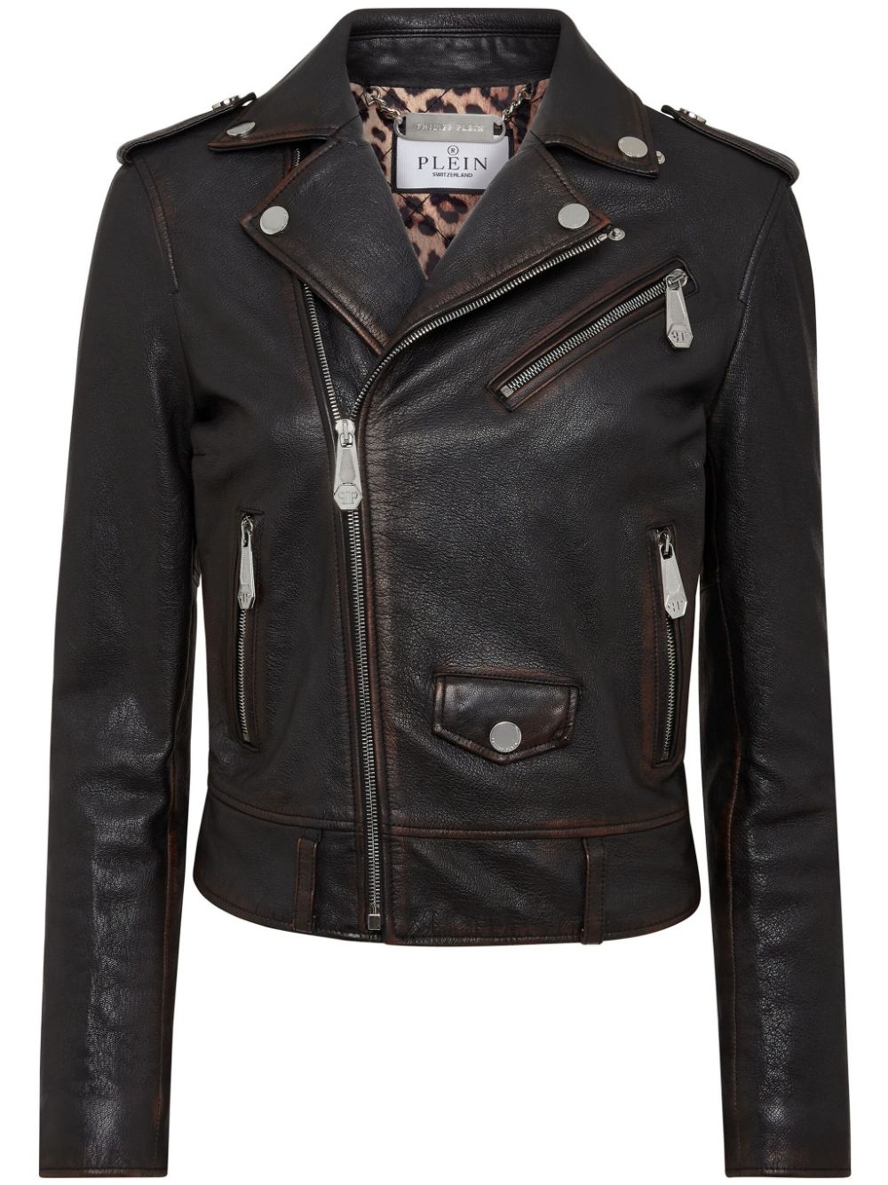 logo-patch leather biker jacket Highlights - Black - Leather - Logo-embossed patch to the rear - Wide notch lapels - Off-centre front zip fastening - Front zip fastening pockets - Belt loops - Cuff zips - Long sleeves - Straight hem Imported Composition Leather 100%