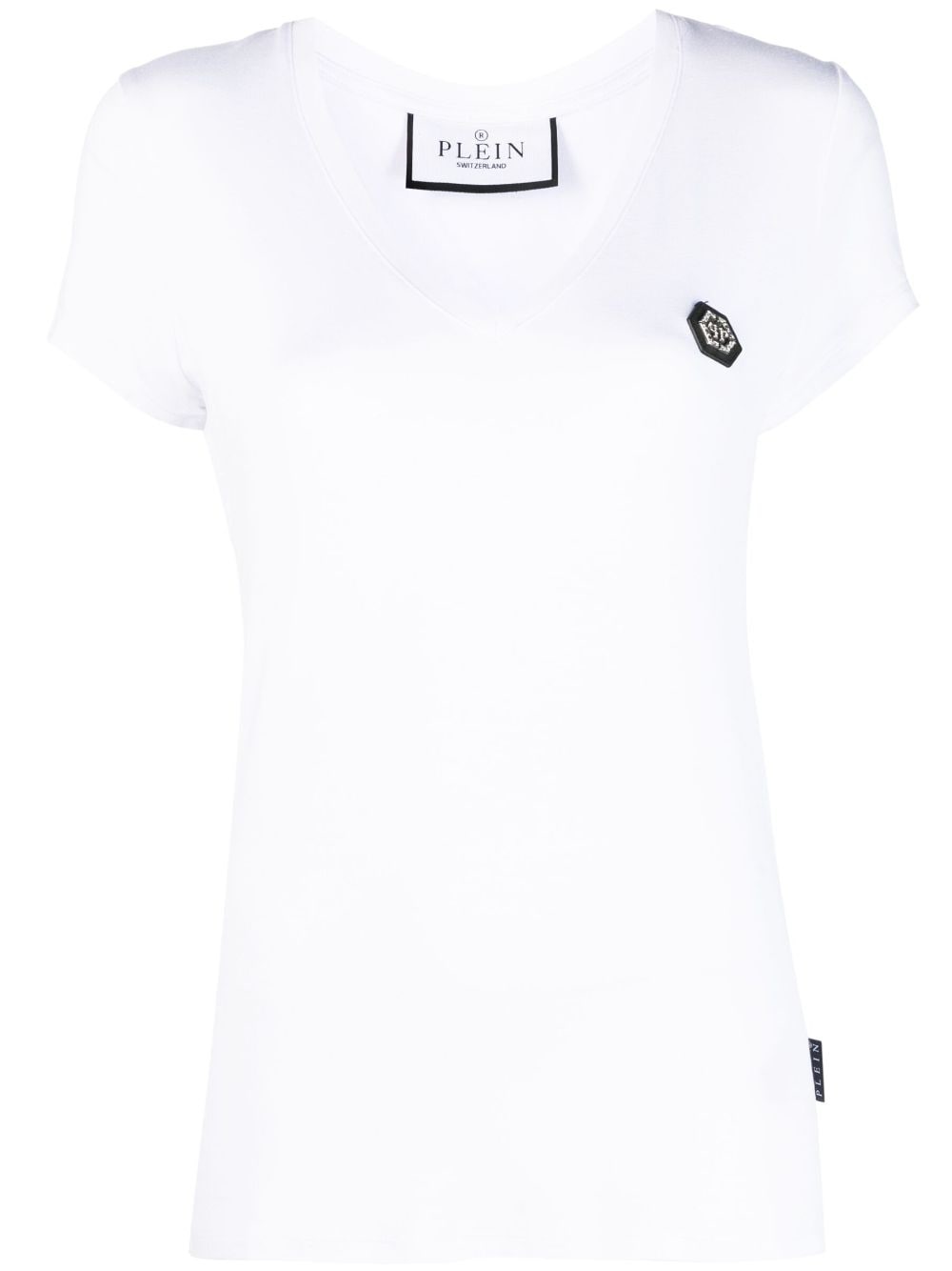 logo-patch V-neck T-shirt Highlights - White - Cotton - Logo patch at the chest - V-neck - Short sleeves - Straight hem Imported Composition Cotton 100% SIZE & FIT Model measurements Height 5 ft 11 in(1.8 m) Bust/Chest 31.49 in(80 cm) Hips 35.43 in(90 cm) Waist 24.4 in(62 cm) FittingInformation Designed for a slim fit that sits just away from the body offering a close yet comfortable fit Made from a lightweight non-stretch fabric, this piece offers minimal elasticity when worn This piece fits true to size – take your usual size Washing instructions Hand Wash