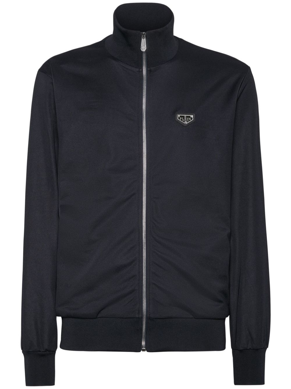 logo patch zipped jacket Highlights - Blue - Zip fastening - High neck - Long sleeves - Logo patch at the chest - Ribbed cuffs and hem Imported Composition Outer: Polyester 60%, Cotton 40%