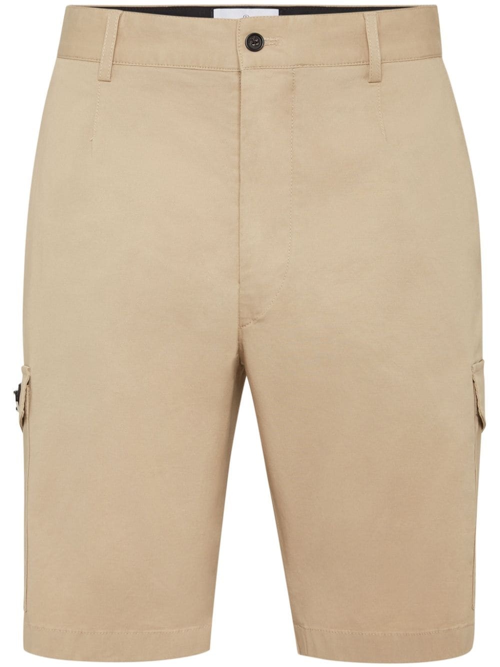 logo-plaque cargo shorts Highlights - Sand beige - Cotton blend - Logo plaque - Belt loops - Concealed fly and button fastening - Two side cargo pockets - Two side slit pockets - Two rear flap pockets - Knee-high Made in Italy Composition Outer: Cotton 97%, Elastane 3% Lining: Polyester 65%, Cotton 35%