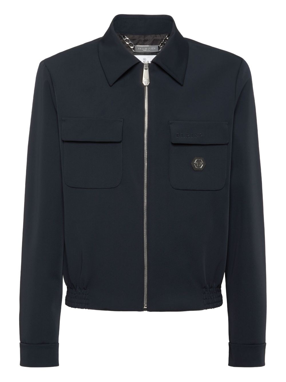 logo-plaque jacket Highlights - Navy blue - Front zip fastening - Two chest flap pockets - Classic collar - Long sleeves Made in Italy Composition Outer: Cotton 58%, Polyamide 38%, Elastane 4% Lining: Viscose 51%, Acetate 49%